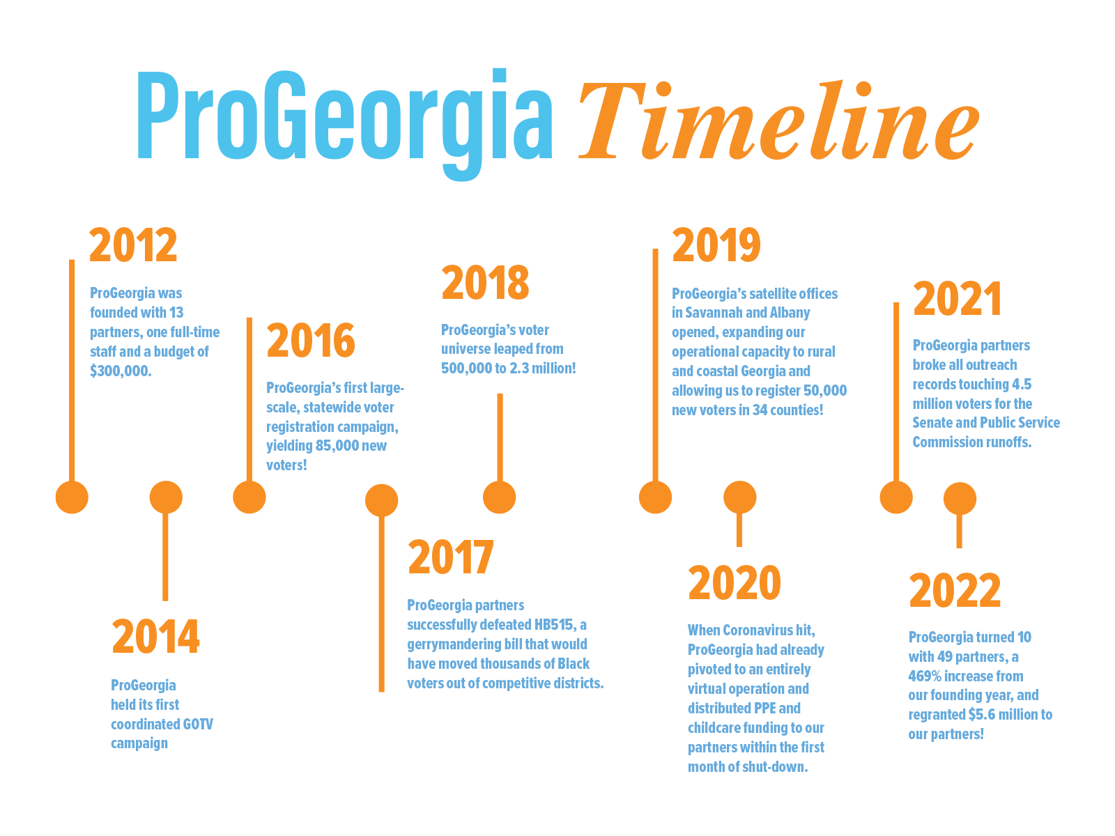 ProGeorgia is a bold, trusted, and diverse collaborative that champions an equitable and inclusive democracy, for and with traditionally underrepresented communities. ProGeorgia supports and coordinates the civic engagement programs of our diverse partner organizations. ProGeorgia develops the infrastructure, executes the joint strategies, and employs new tools and technology to assure a government that is more responsive to the needs of our constituencies.